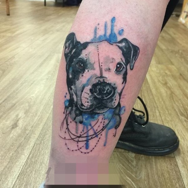 帅气的彩色花腿纹身水墨画纹身图案