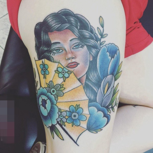 清纯女孩腿上可爱肖像纹身图片_肖像纹身图案大全_纹身图吧