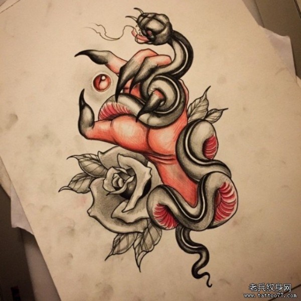 欧美school手蛇玫瑰黑暗系纹身图案手稿