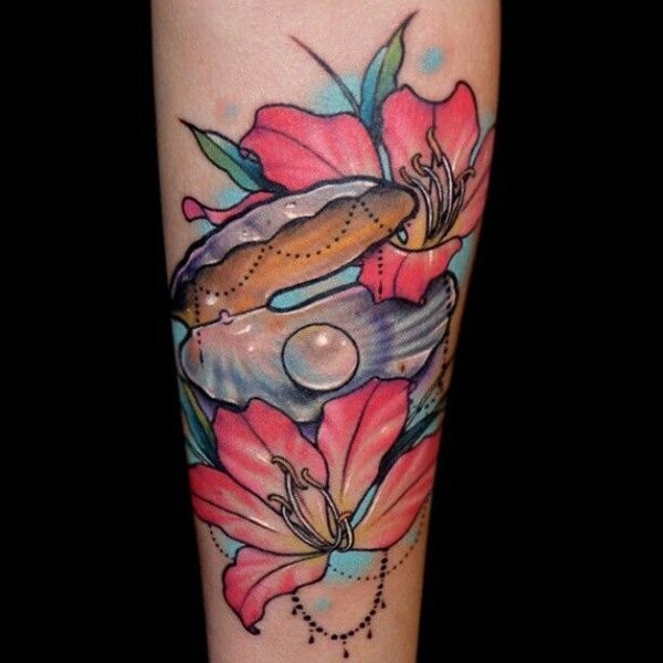 一组关于贝壳的彩绘简约线条文艺小清新纹身图案