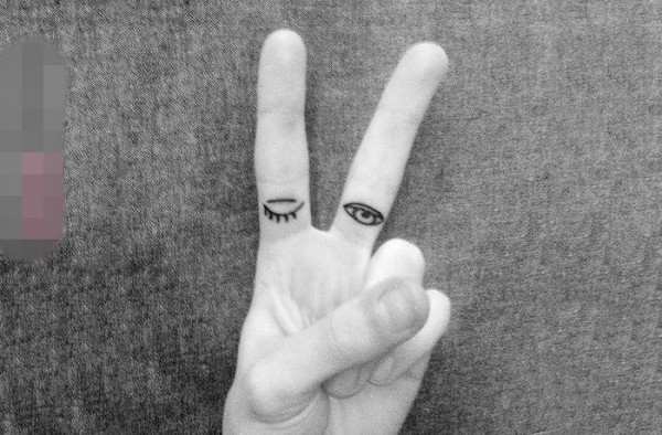 女生手指上黑色线条几何元素创意小图案纹身图案