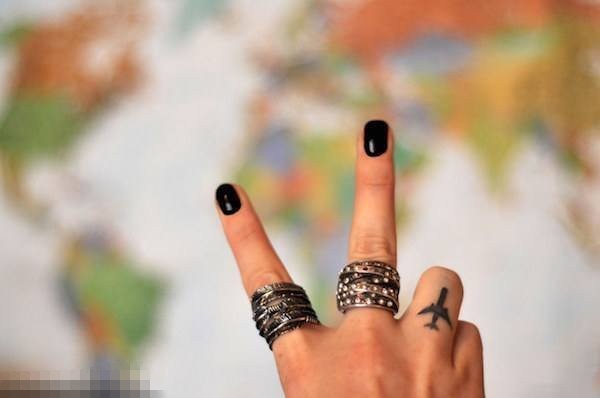 女生手指上黑色线条几何元素创意小图案纹身图案