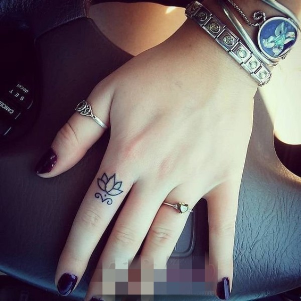 女生手指上黑色线条几何元素创意小图案纹身图案