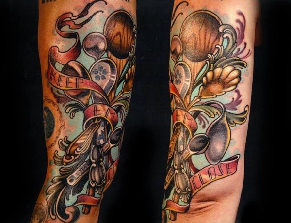 old school丰富多彩的各种勺子手臂纹身图案