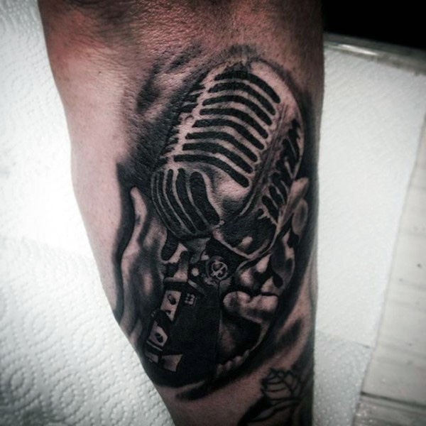 手臂非常写实的老式麦克风纹身图案