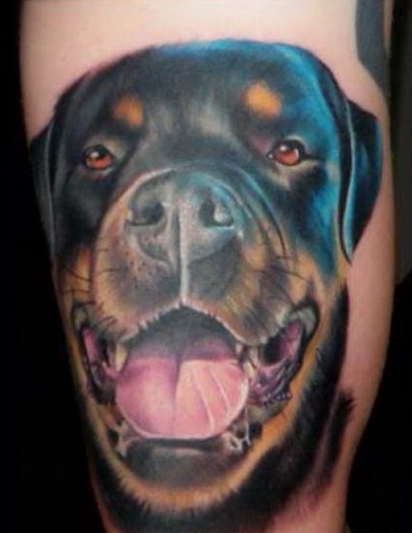 手臂幸福的写实罗威纳犬头像纹身图案