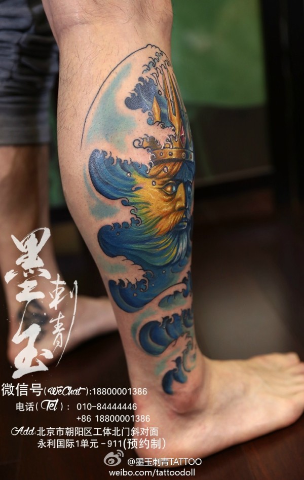 《欧美彩色风格波塞冬》完成版—by:文身师作品