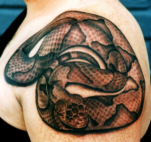 肩部棕色的蛇纹身图案