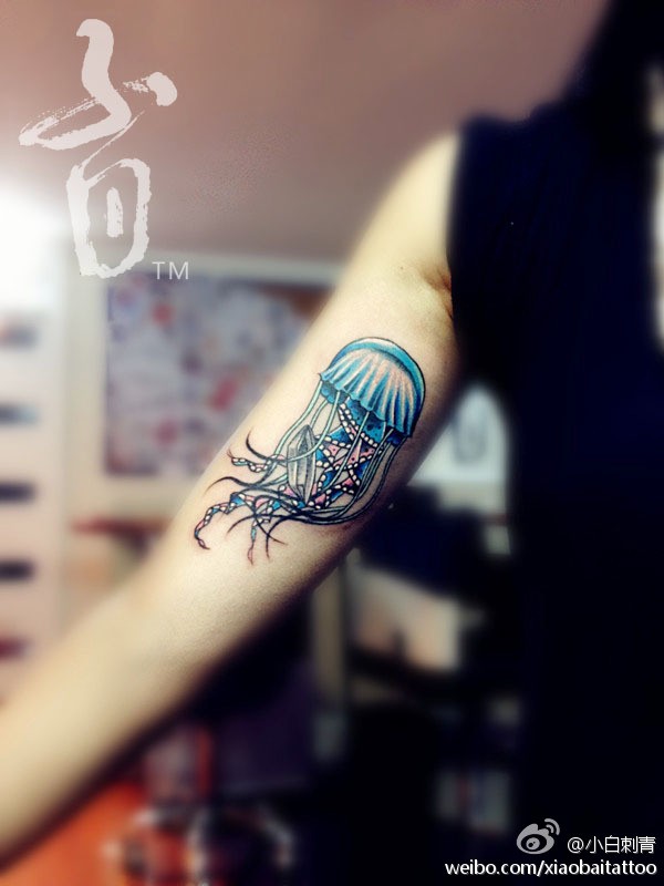 手臂内侧的蓝色水母
