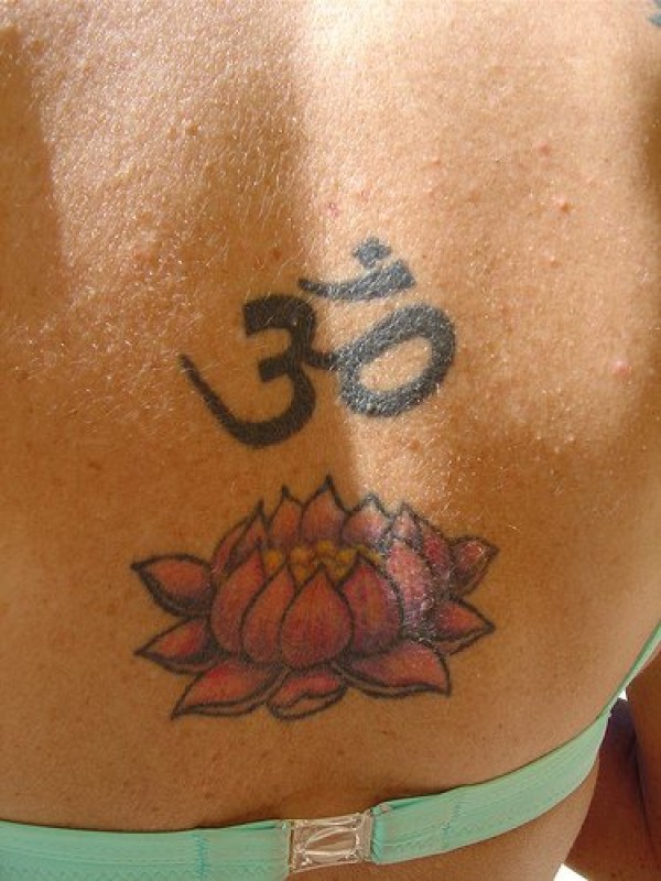 莲花与宗教字符纹身图案
