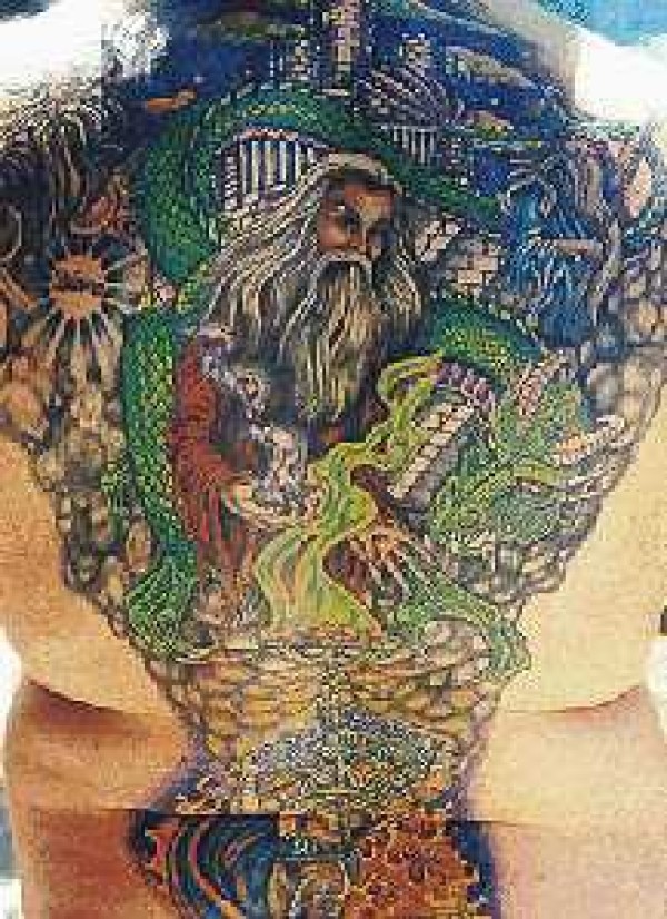 背部幻想人物彩色纹身图案