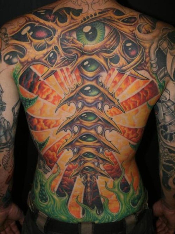 背部后现代艺术眼球纹身图案
