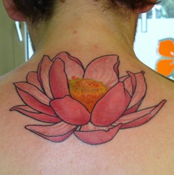 后背粉红色的莲花纹身图案