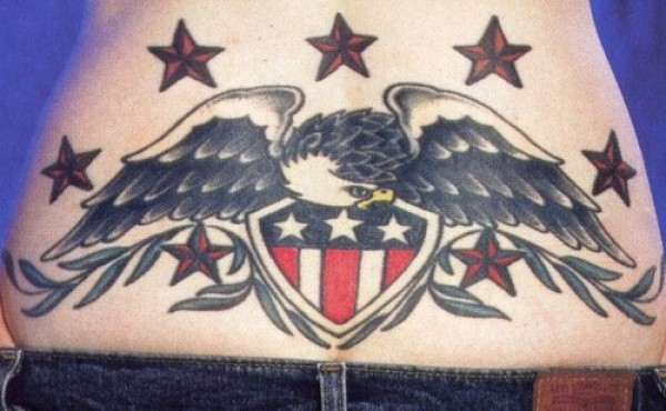 腰部美国徽章星星和鹰纹身图案