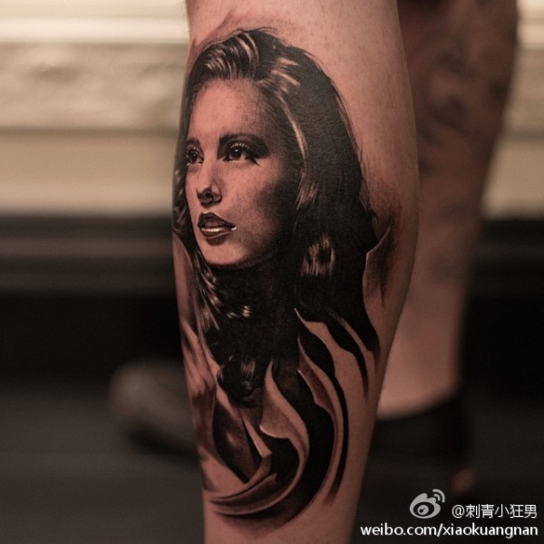 女生人物纹身图案 女生小腿上女生人物纹身图案