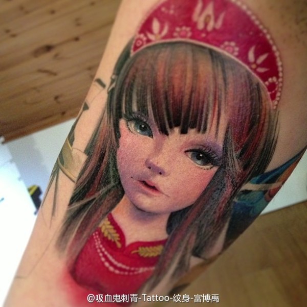复古卡通红唇美女手臂纹身_卡通纹身图案大全_纹身图吧