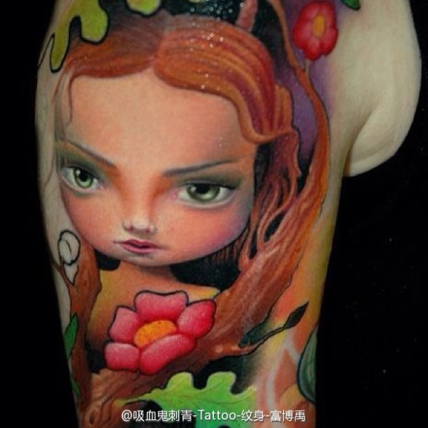 复古卡通红唇美女手臂纹身_卡通纹身图案大全_纹身图吧