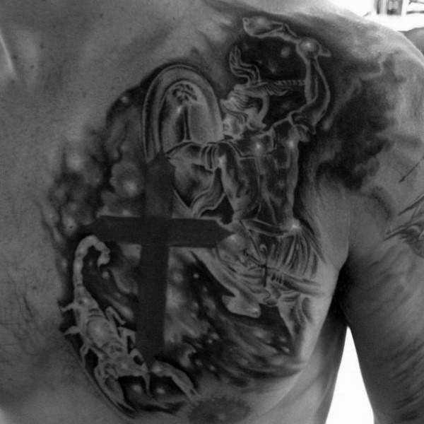 胸部逼真的蝎子与天蝎座人像纹身图案