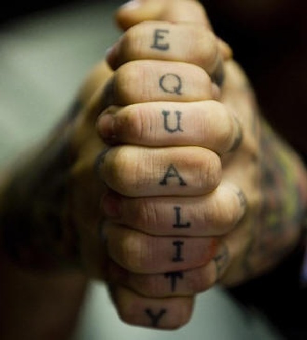 手指关节黑色风格字母纹身图案