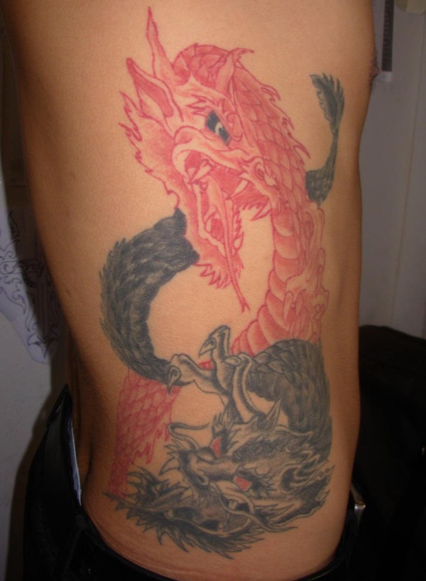 龙纹身手稿_一组老传统黑灰龙手稿纹身图案