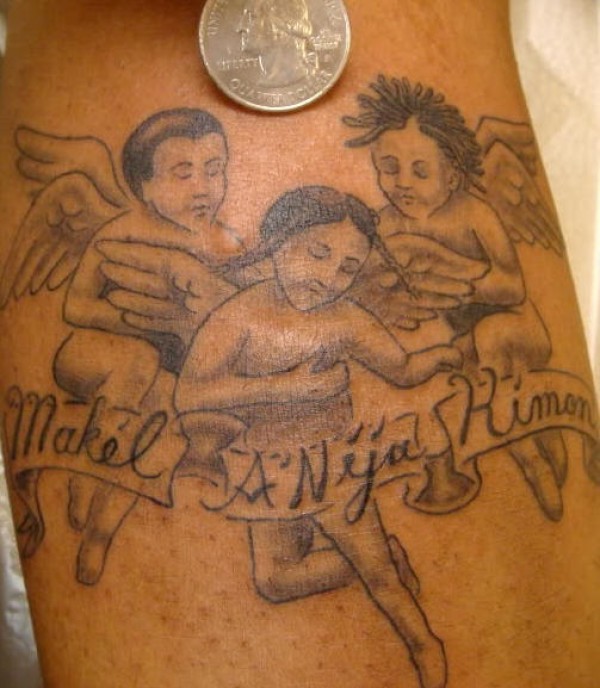 三个小天使黑色纹身图案