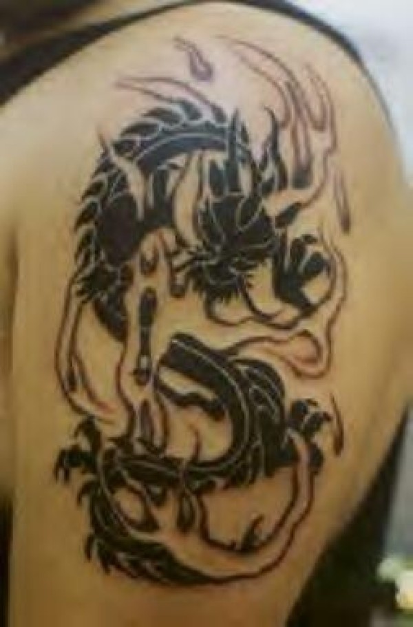 龙图腾和火焰黑色纹身图案