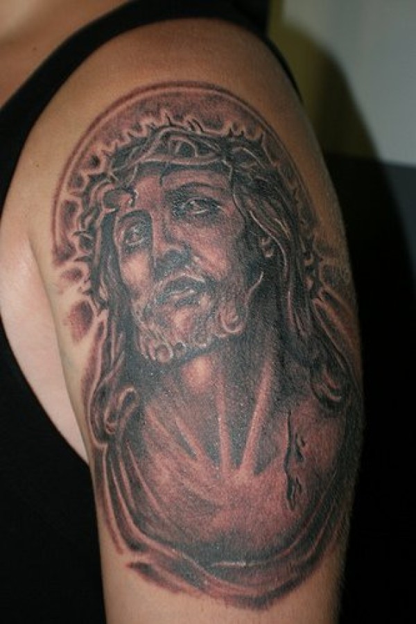 痛苦的Jesus黑色大臂纹身图案