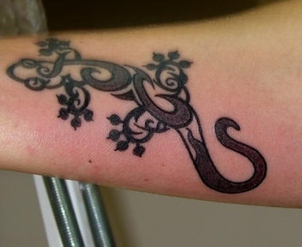 好看的黑色部落蜥蜴纹身图案