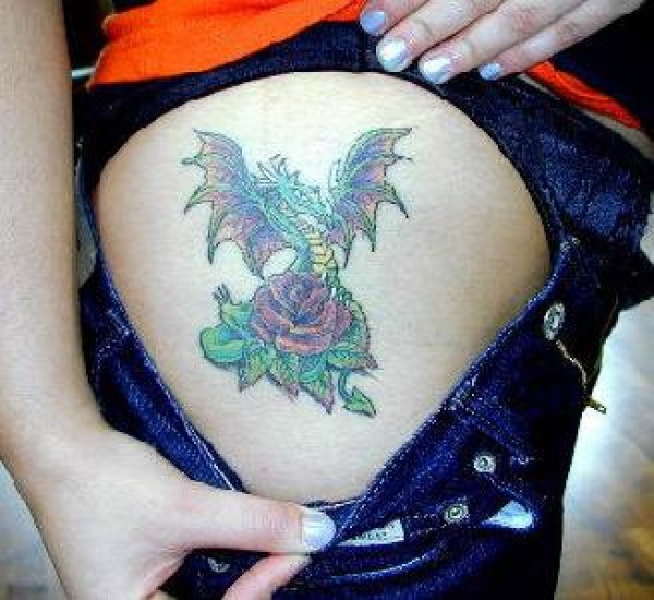 蓝色龙与玫瑰纹身图案