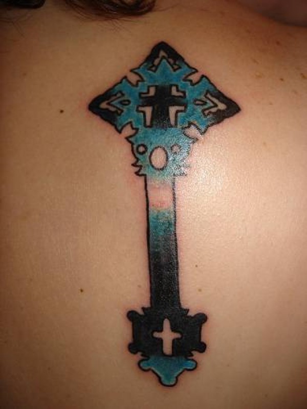 蓝色十字架花纹纹身图案