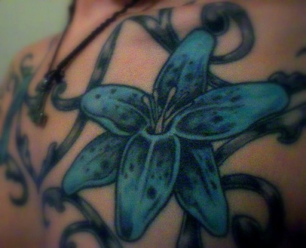 茂盛的蓝色百合花纹身图案