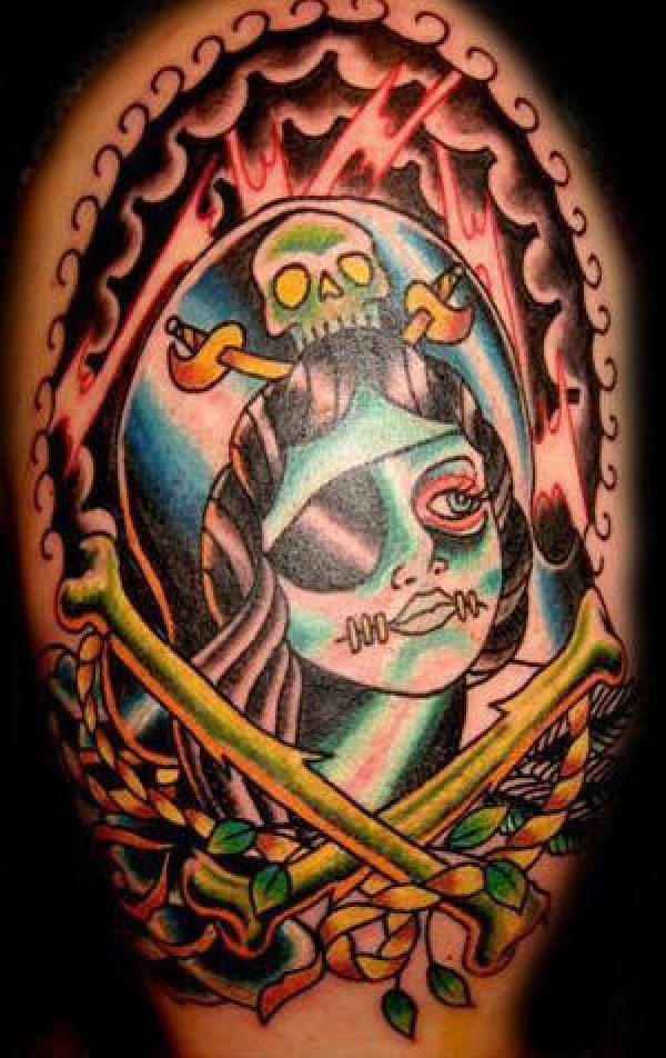 僵尸海盗女孩肖像经典纹身图案