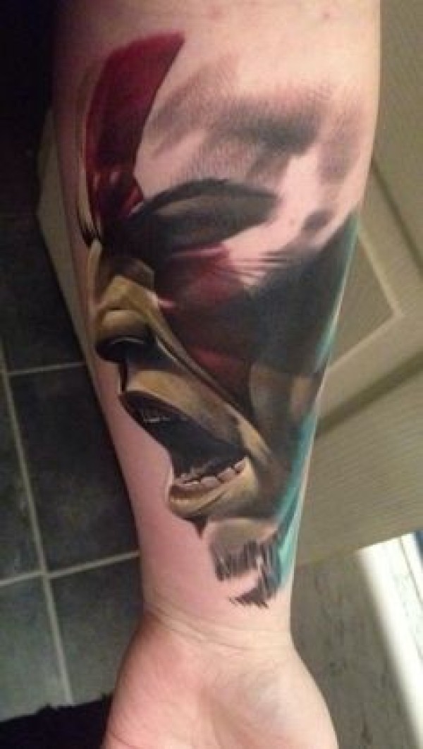 小臂愤怒的野蛮人肖像纹身图案