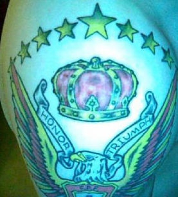 星星皇冠和鹰翅膀纹身图案
