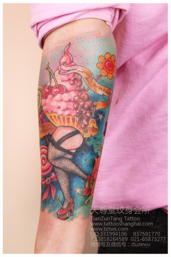 彩色的可爱卡通纹身小图美味的食物纹身图案