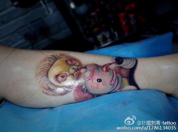 复古卡通红唇美女手臂纹身_卡通纹身图案大全_纹身图吧