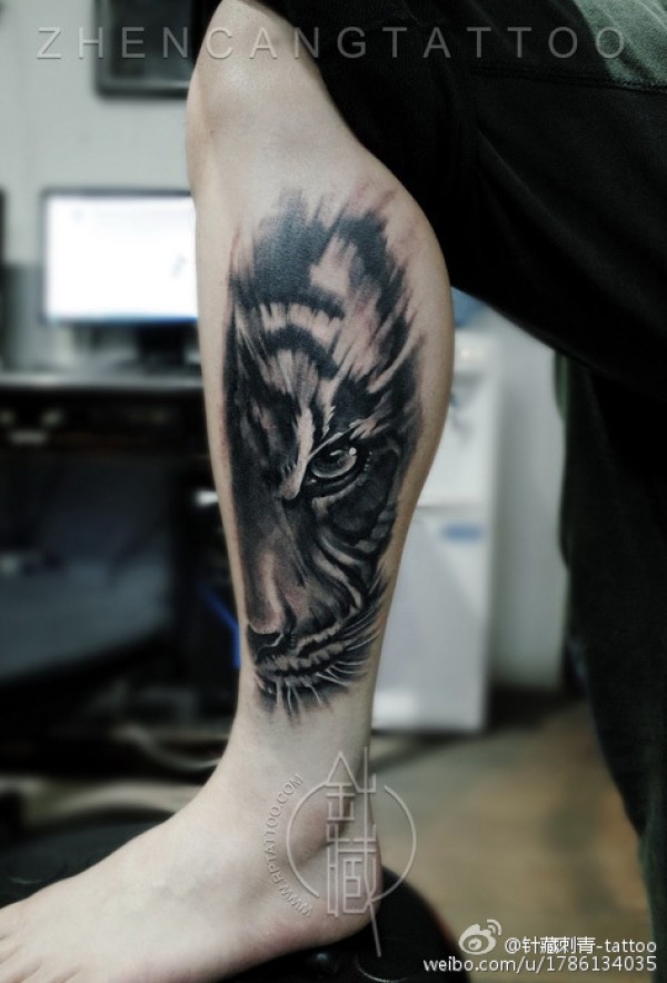 花腿纹身--一组大黑腿纹身图案作品欣赏