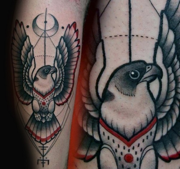 old school彩色鹰纹身与神秘的装饰纹身图案