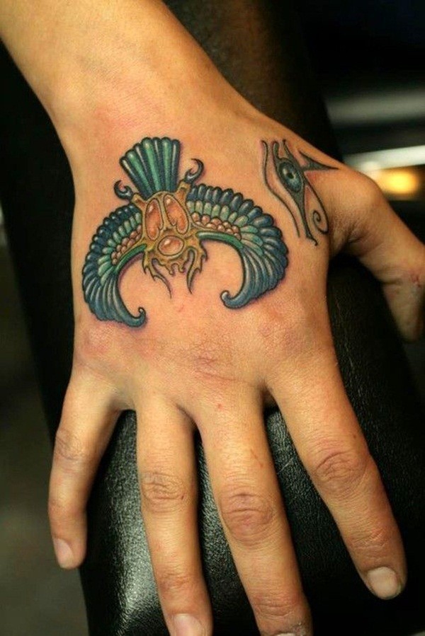 手背埃及圣甲虫和荷鲁斯之眼纹身图案