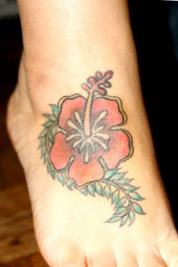 脚背淡雅的芙蓉纹身图案