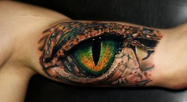 大臂内侧写实彩色鳄鱼眼睛纹身图案