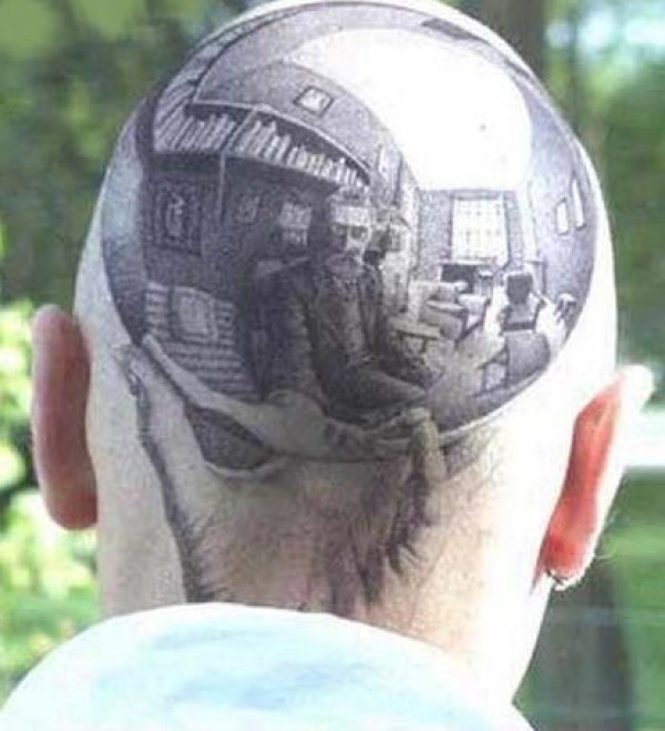 男子头部埃舍尔的自画像纹身图案