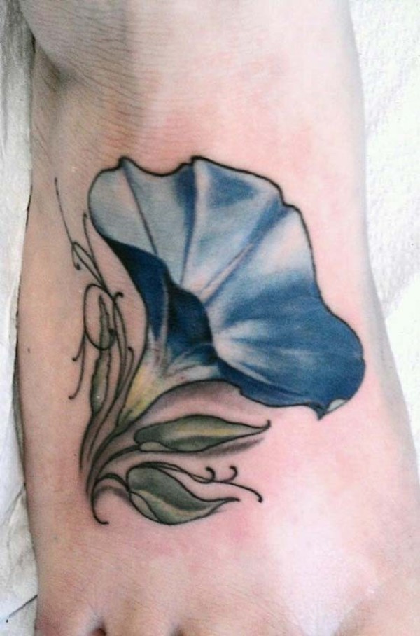 脚背水彩色紫色牵牛花纹身图案