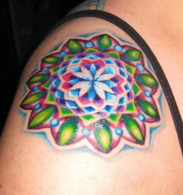 肩部彩色迷人的花朵纹身图案