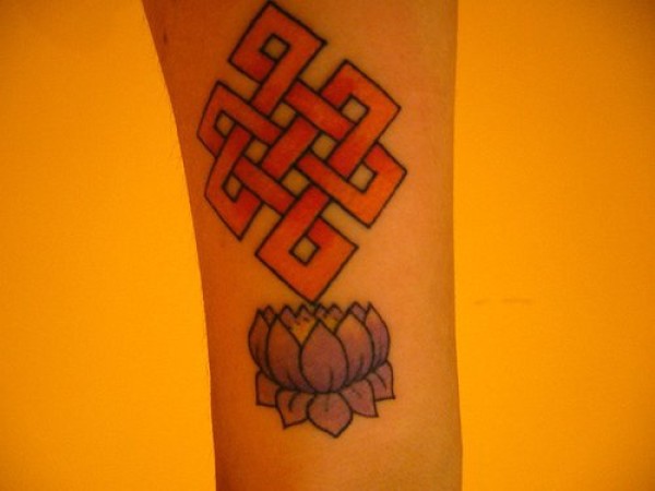 手臂彩色无限结与莲花纹身图案