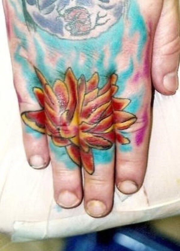 手部彩色植物百合花纹身图案