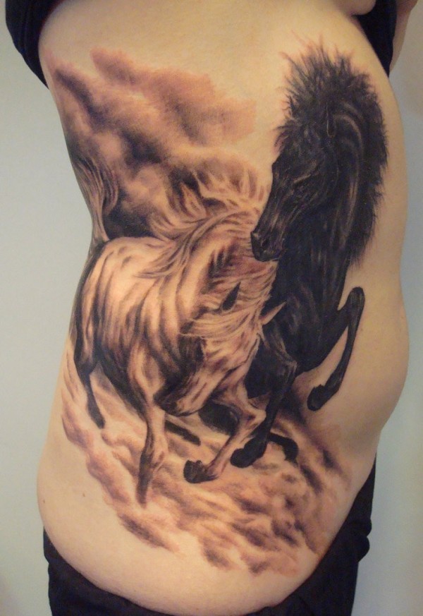腰侧棕色战斗野马纹身图案