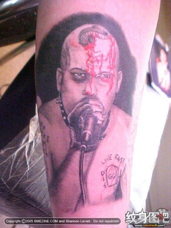 拿麦克风的光头男人纹身