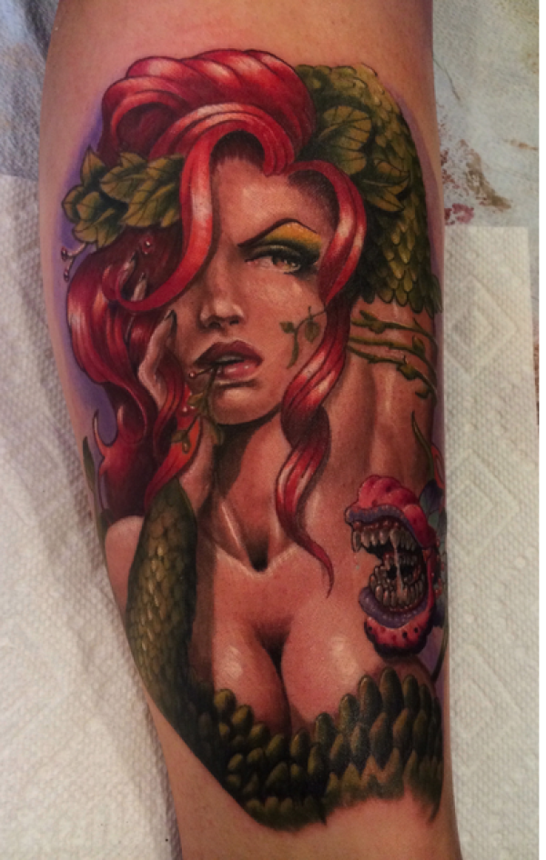 腿部彩色性感女性插画风格纹身图片