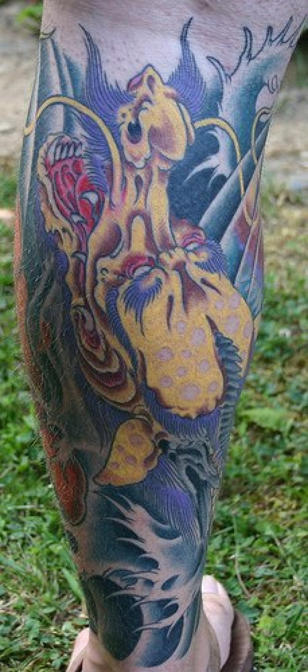 腿部彩色可怕的怪物纹身图片